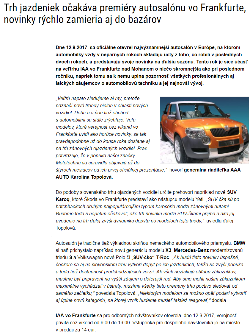 Celý článok nájdete tu: http://motofocus.sk/trh-s-ojazdenymi-vozidlami/16612,trh-jazdeniek-ocakava-premiery-autosalonu-vo-frankfurte-novinky-rychlo-zamieria-aj-do-bazarov