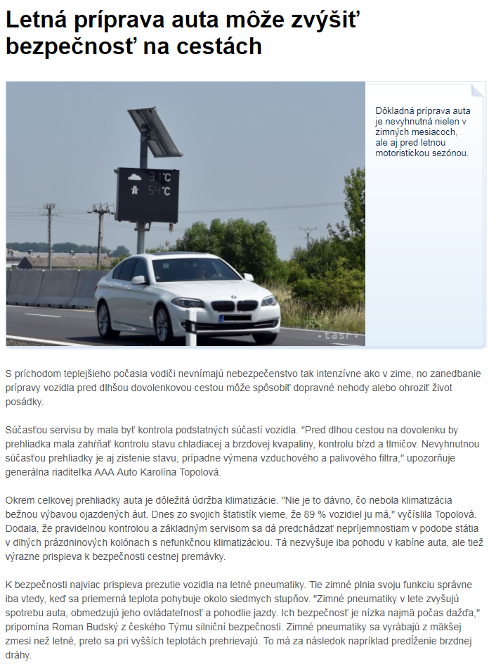 Celý článok nájdete tu: http://www.transport.sk/spravy/9880-letna-priprava-auta-moze-zvysit-bezpecnost-na-cestach.html